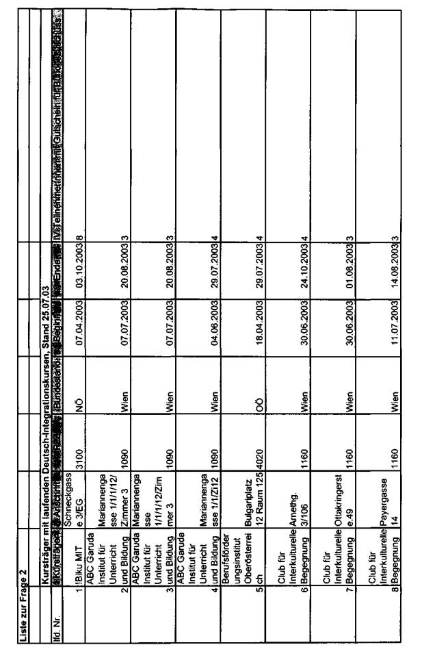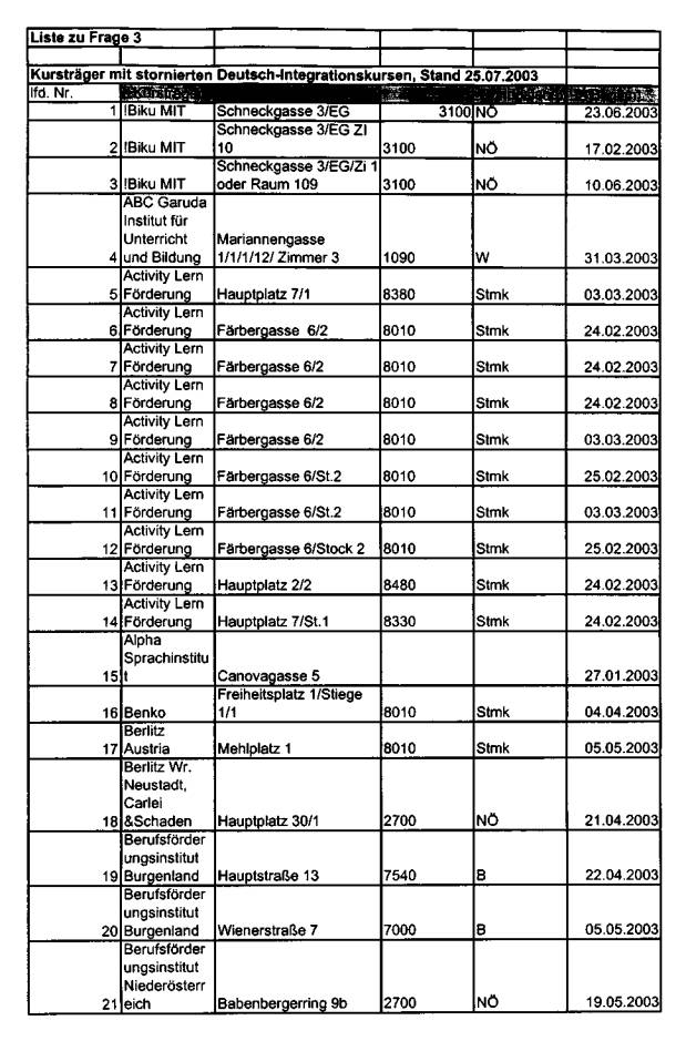 Im Jahr 2003 wurden bisher 44 Kurse mit