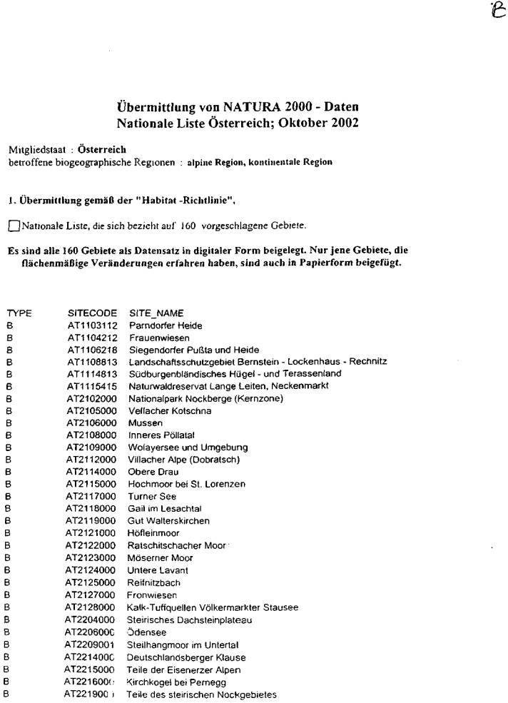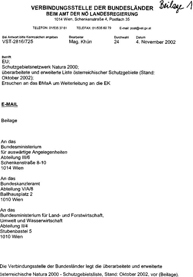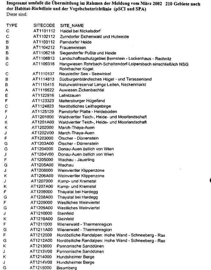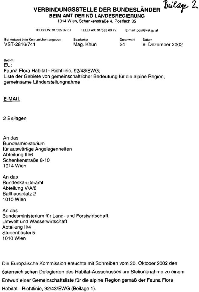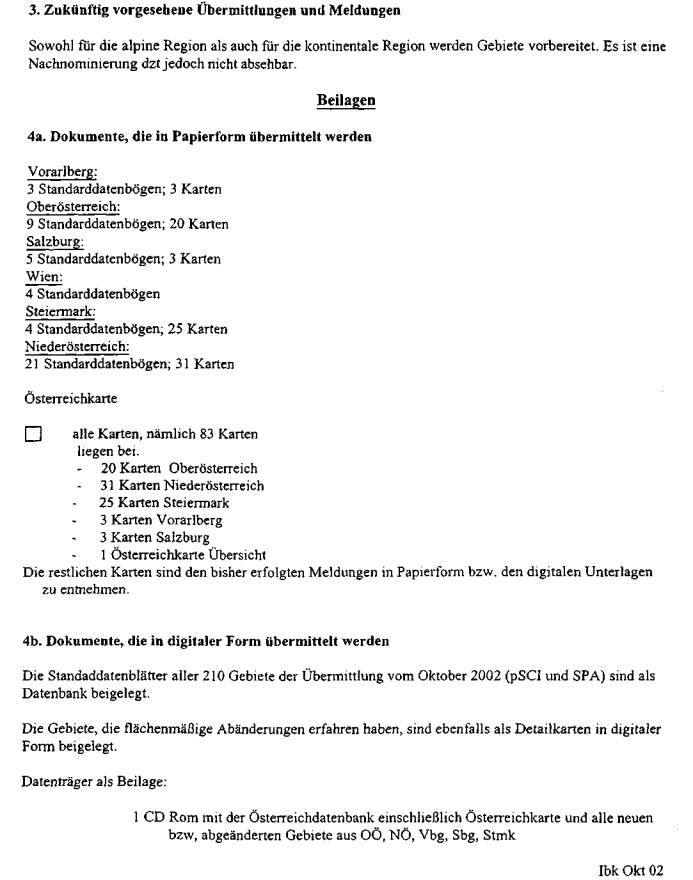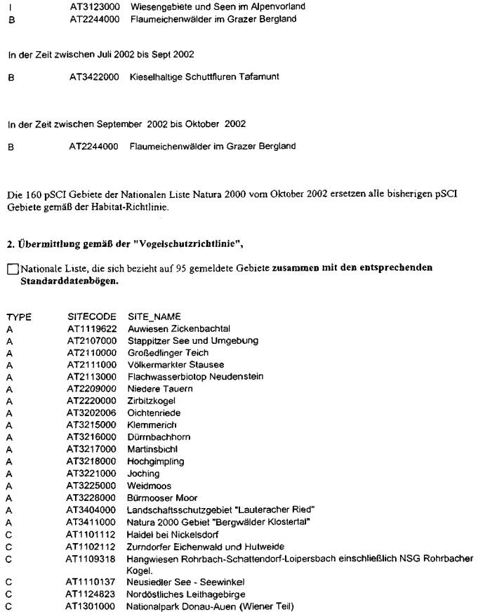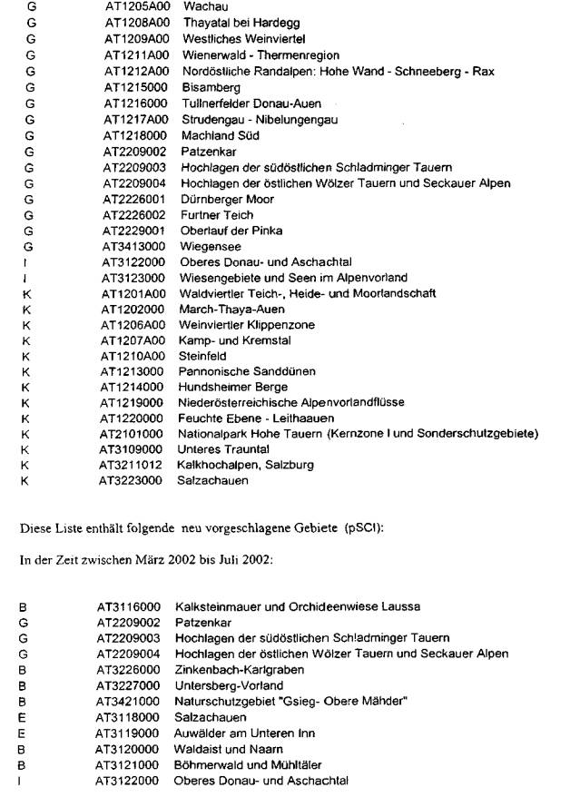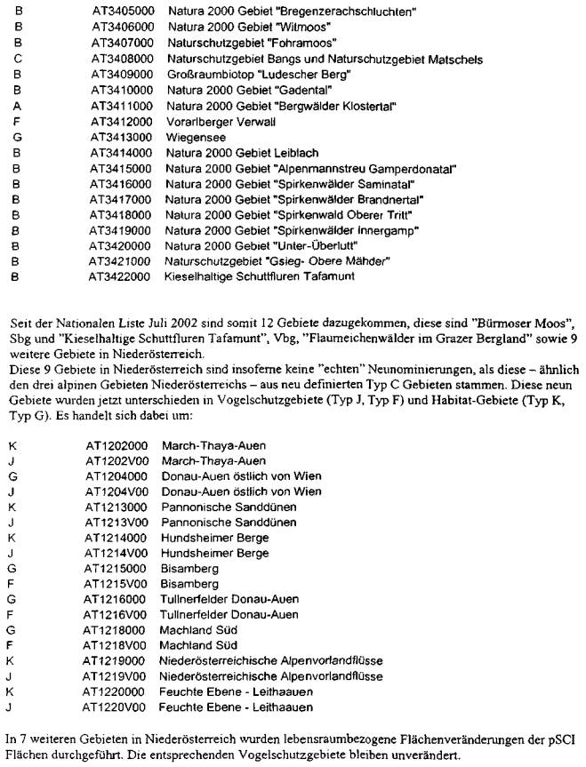 ber 2002, die aktuelle österreichische Gebietsliste betreffend, vor (Beilage