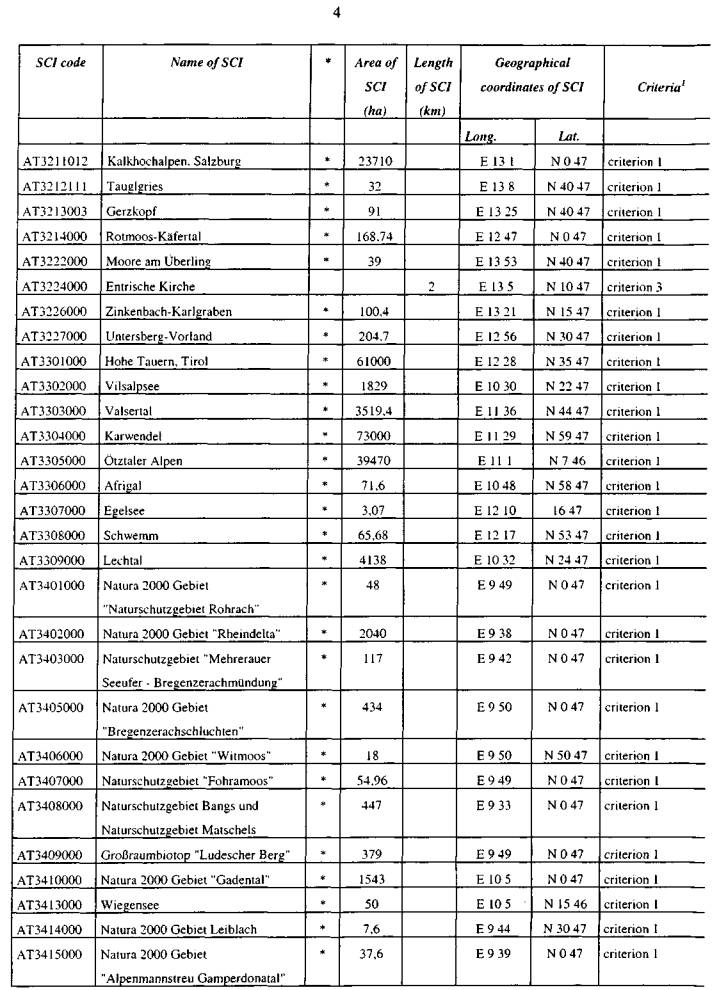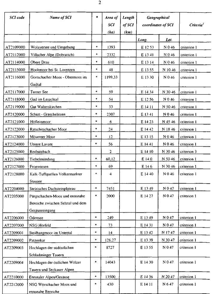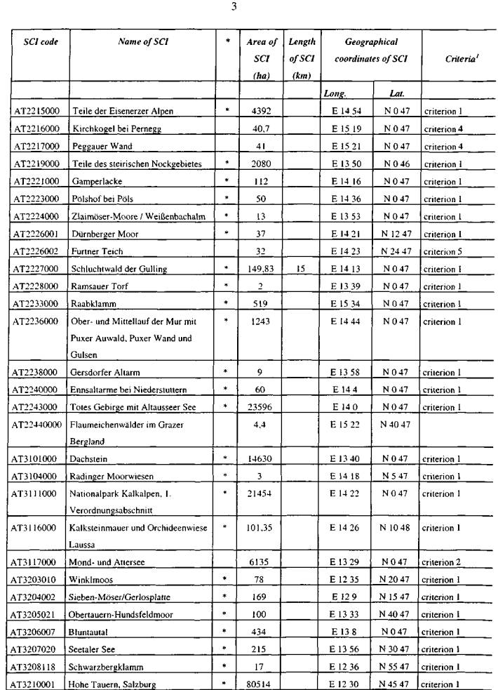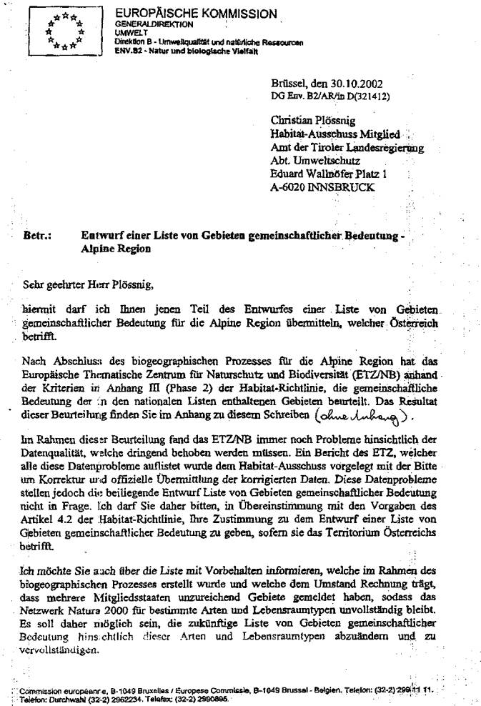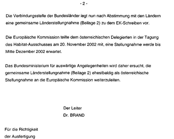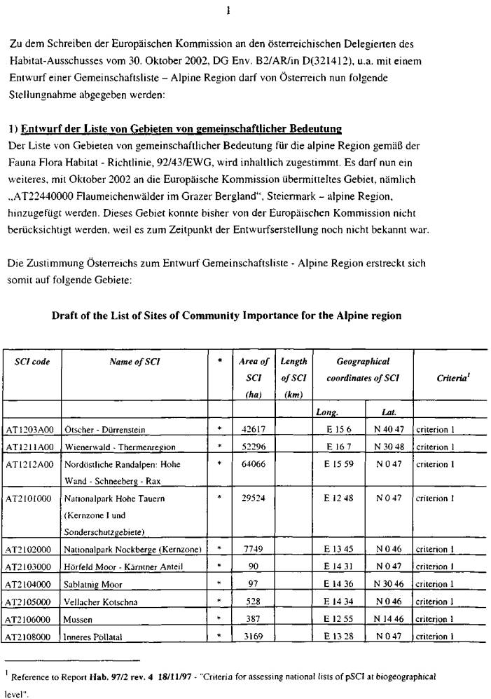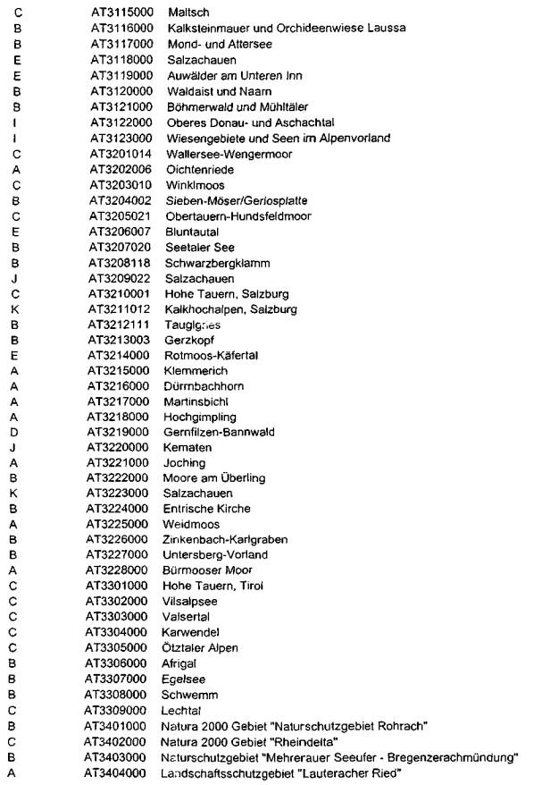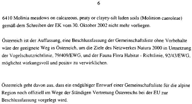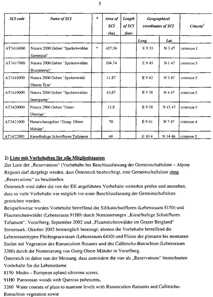 ber 2002, die aktuelle österreichische Gebietsliste betreffend, vor (Beilage