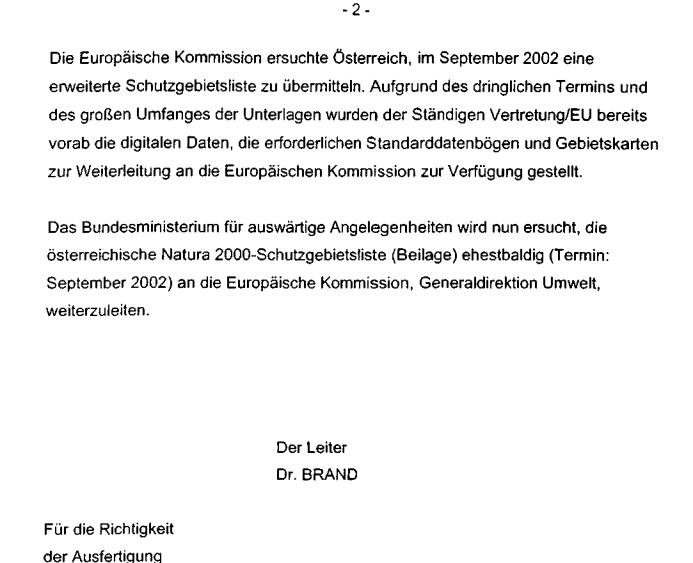 Österreich noch nicht genügend Gebiete ausgewiesen hat, wurden von der