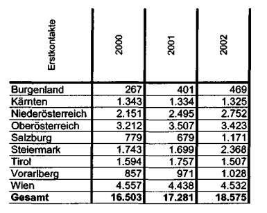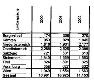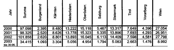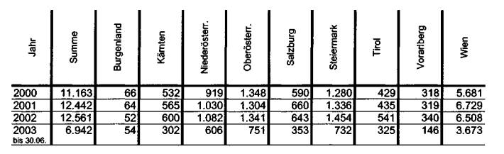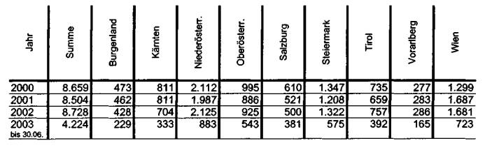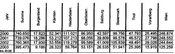 nur bundesweit und nur für 2000, 2001 und 2003 ermittelt werden. Diese Daten