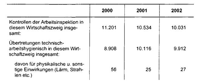 kontrollen der Arbeitsinspektion und deren Ergebnissen in Bezug technischen und