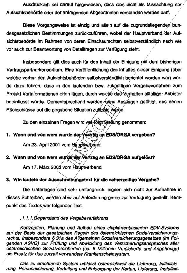 Freundinnen und Freunde, betreffend „Hauptverband und EDS/ORGA",