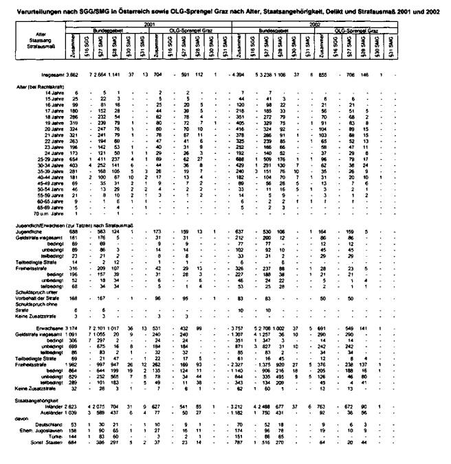 2002 nach Alter, Staatsangehörigkeit, Delikt und Strafausmaß zu entnehmen.