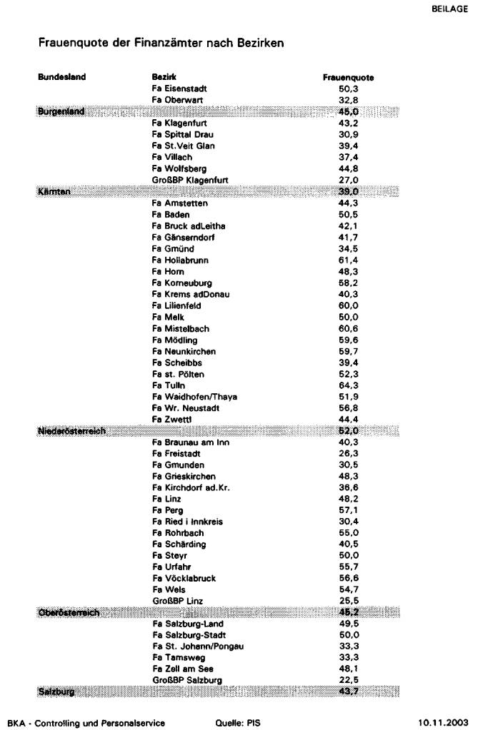 Der Frauenanteil in den Finanzämtern beträgt in Wien 53,4%,