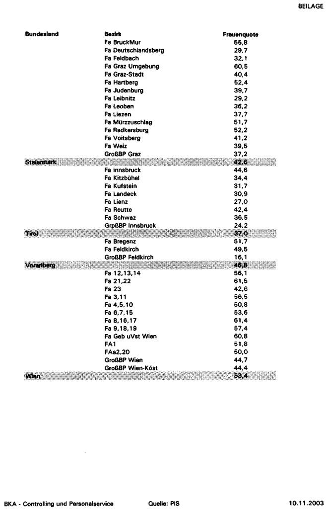 Frauenanteiles in allen Bereichen der Bundesverwaltung beibehalten werden.