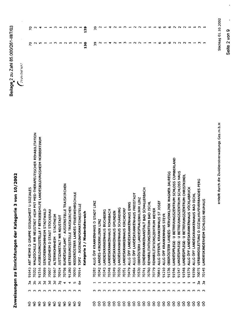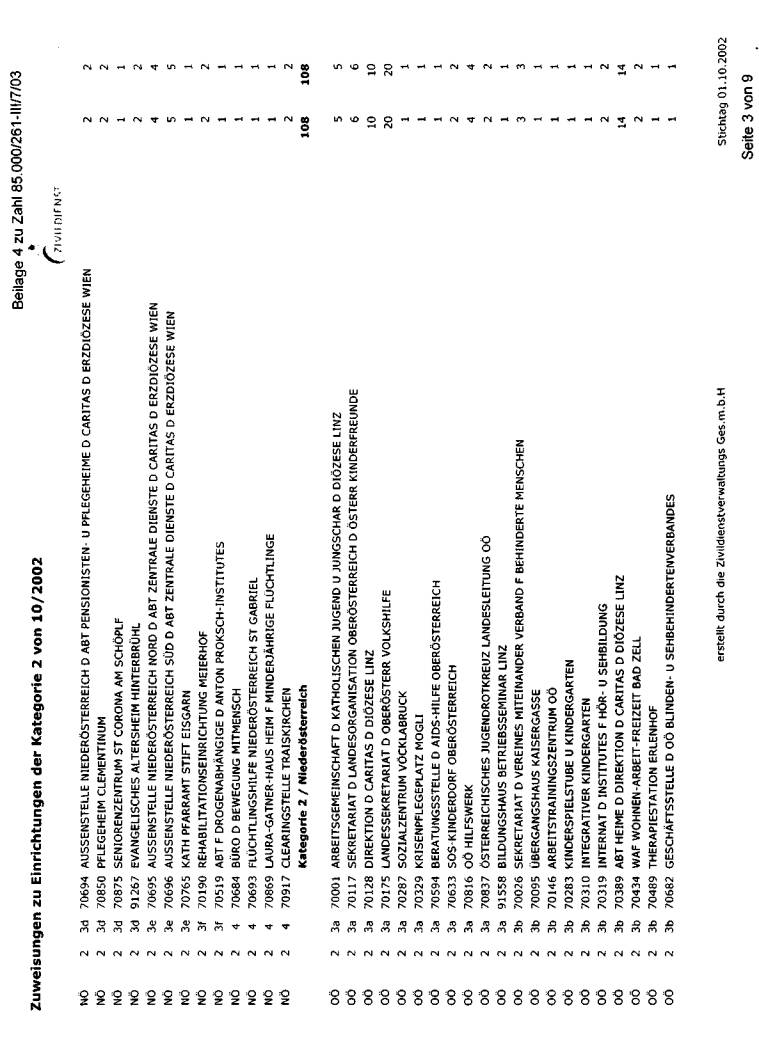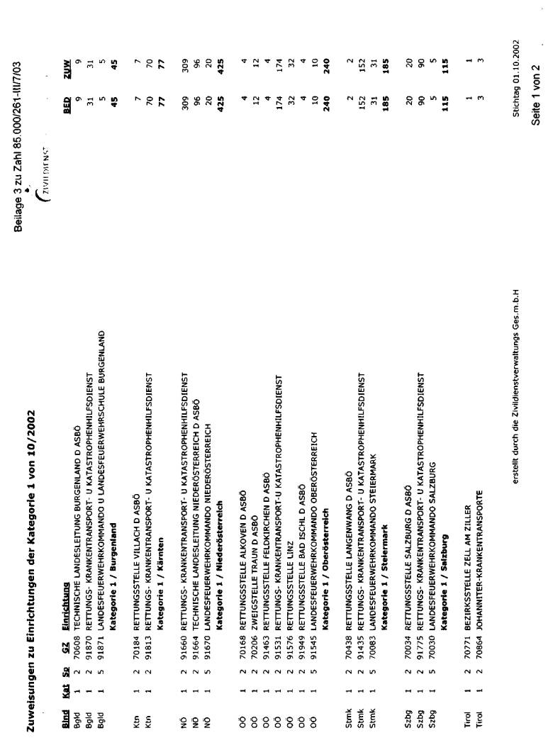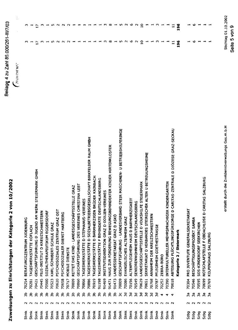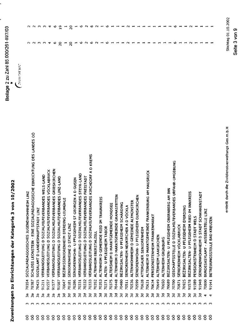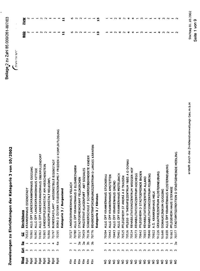 wurde bei der jeweils erwünschten Auflistung mit Stichtag 1. Oktober 2002 dargestellt. Die