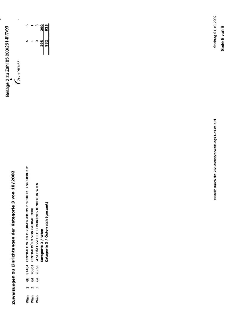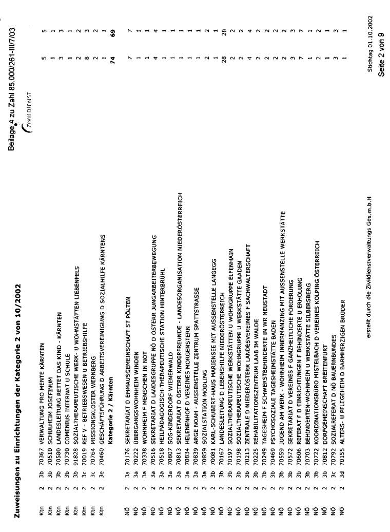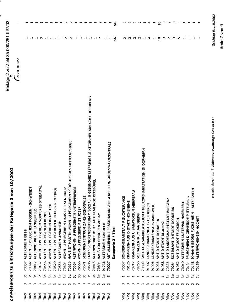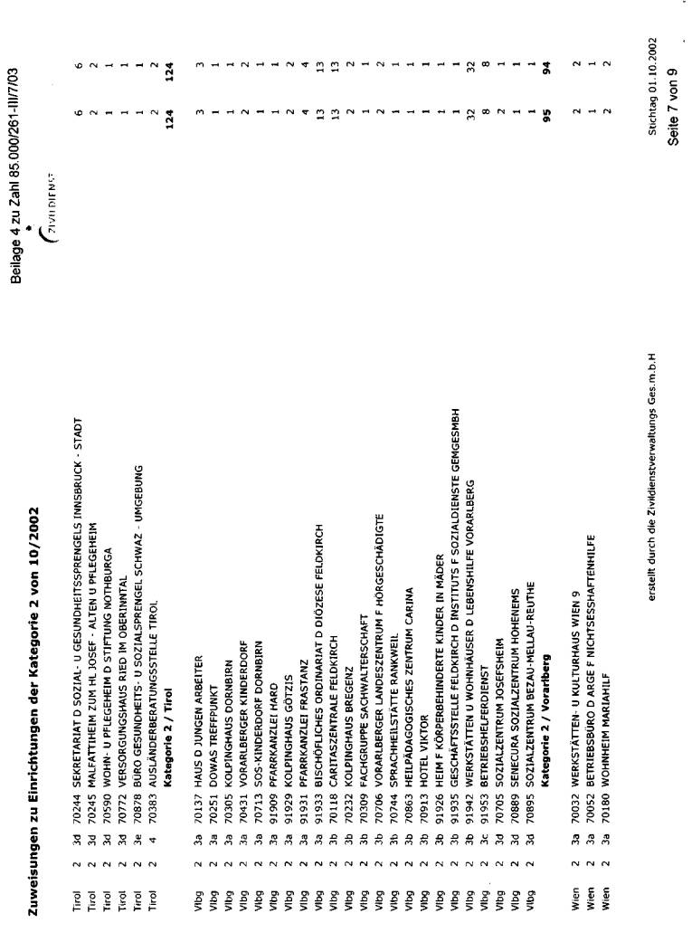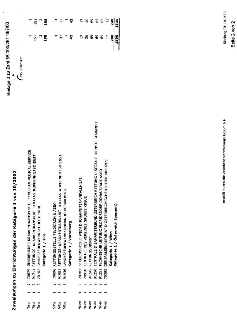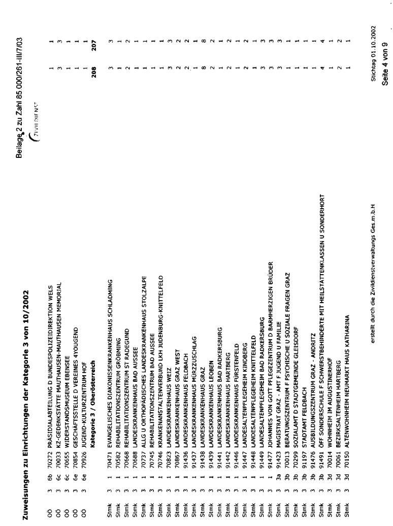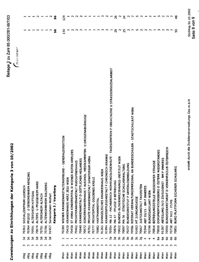 wurde bei der jeweils erwünschten Auflistung mit Stichtag 1. Oktober 2002 dargestellt. Die