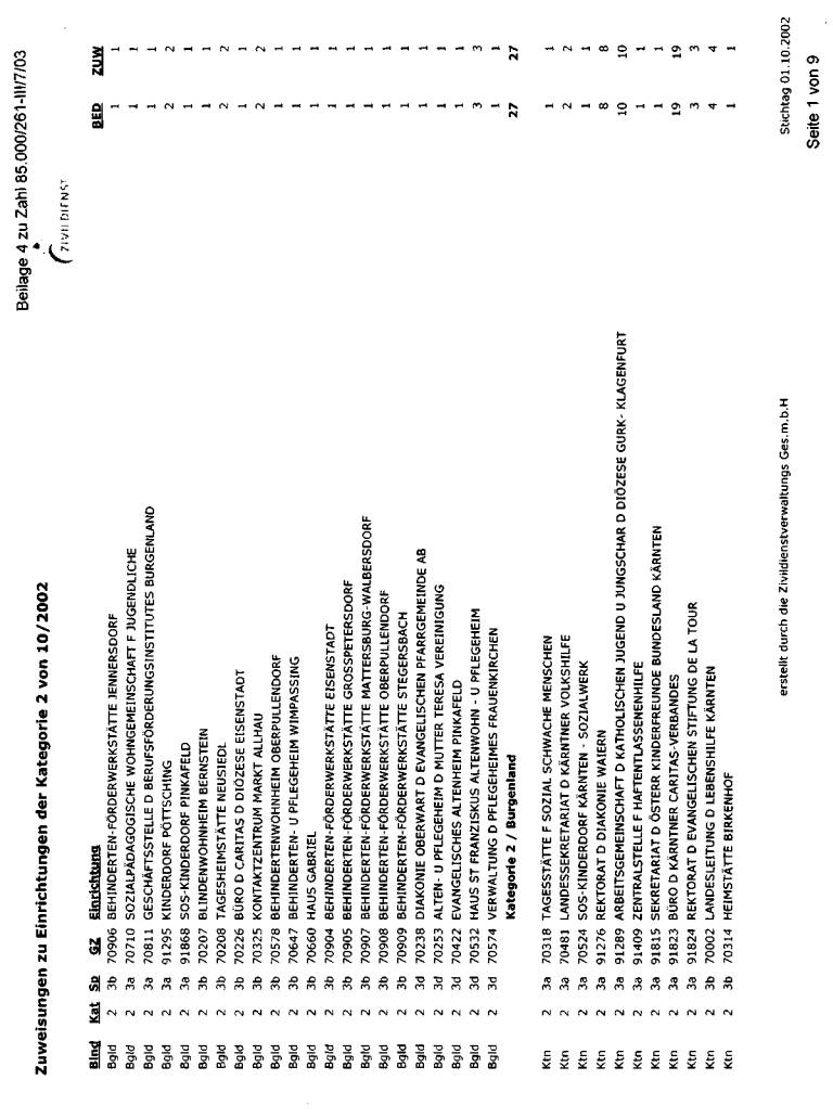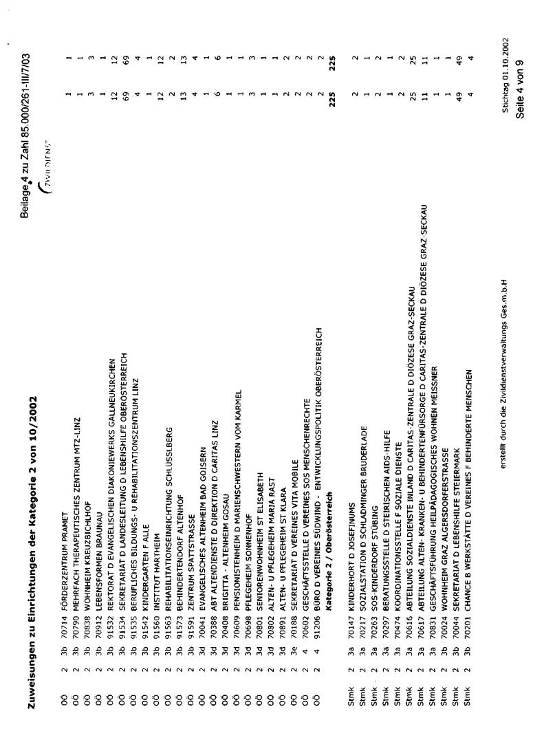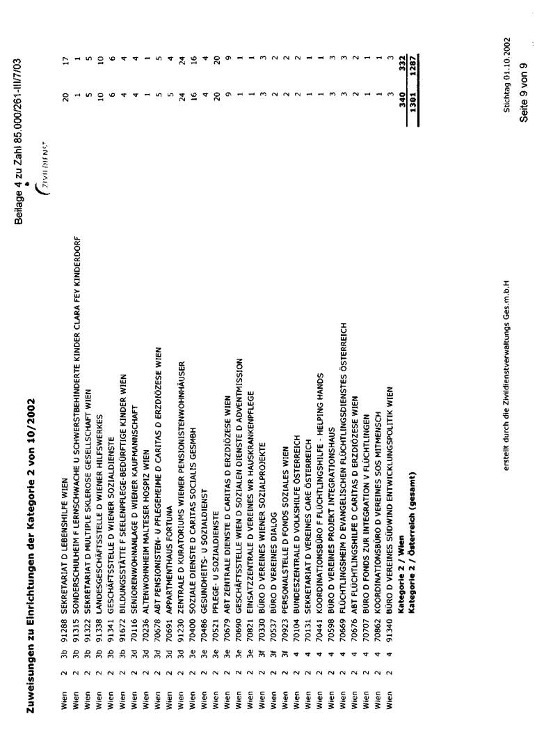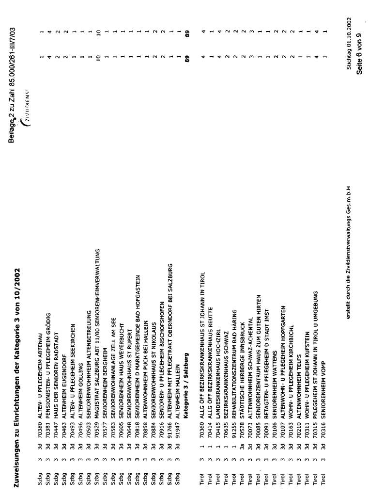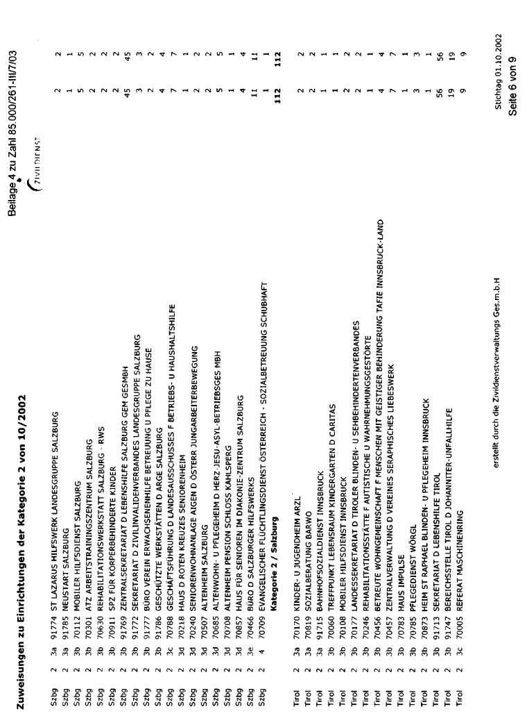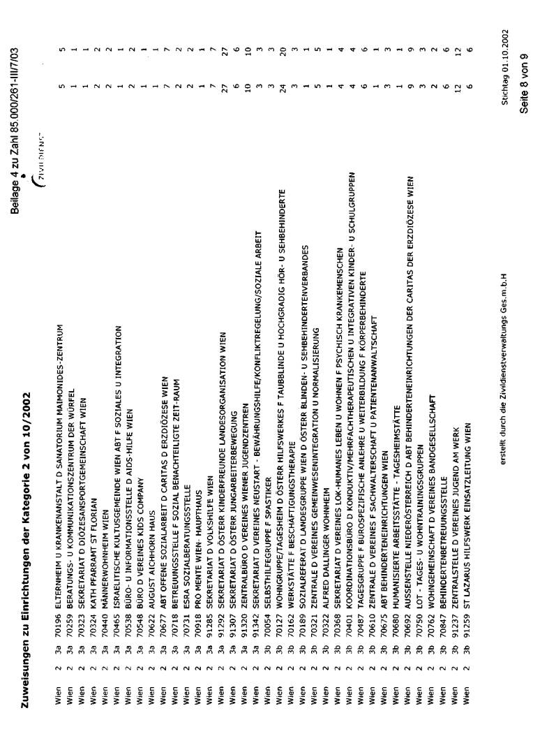 wurde bei der jeweils erwünschten Auflistung mit Stichtag 1. Oktober 2002 dargestellt. Die