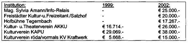 2002 die Förderungen gegenüber dem Jahr 1999 erhöht (auf die Nennung von Kul-
