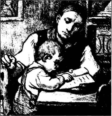 Eine Mutter lehrt ihr Kind die Muttersprache