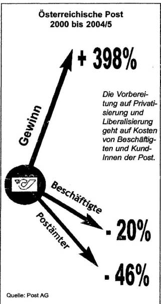 märkte und die Privatisierung der Post gehen ein-