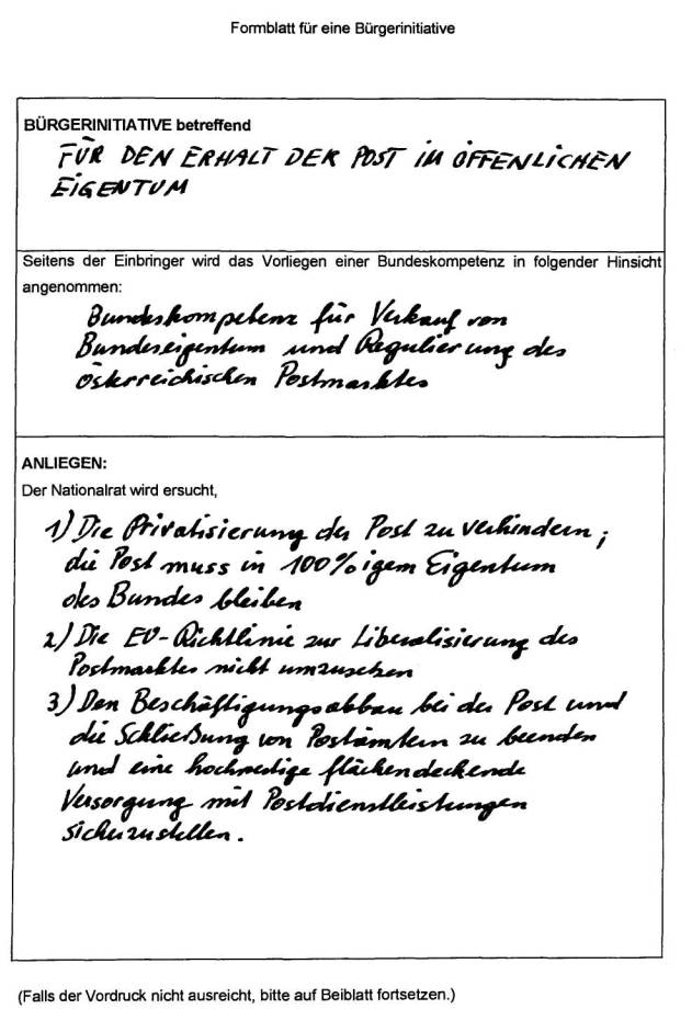 Petition dafür, die Post im öffentlichen