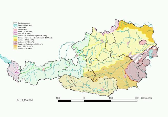 Darstellung der nationalen Anteile der internationalen Flussgebietseinheiten Donau, Rhein und Elbe sowie die zugeordneten Planungsräume: