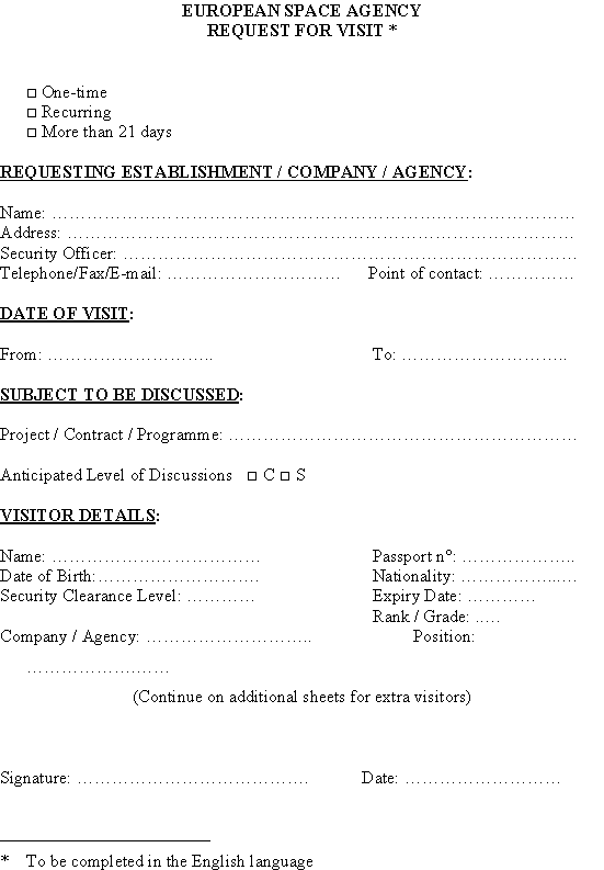 e. auf Ersuchen des ESA-Sicherheitsbüros oder