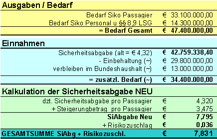 eine Anpassung der Sicherheitsabgabe bedeckt werden.