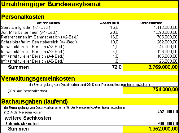 (2) Zur zweckentsprechenden Evaluierung der Arbeitsprozesse des unabhängigen Bundesasylsenates wird von der Vollversammlung ein Controllingausschuss für die Funktion eines begleitenden Controllings eingerichtet; die Vollversammlung ernennt die notwendige Anzahl von Ausschussmitgliedern. Der Aufgabenbereich des Controllingausschuss umfasst – bei voller Wahrung der Unabhängigkeit der Mitglieder des unabhängigen Bundesasylsenates – die Optimierung der Ressourcensteuerung im Bezug auf die Aufbau- und Ablauforganisation sowie den administrativen Dienstbetrieb. Der Controllingausschuss berichtet jährlich dem Vorsitzenden über die Ergebnisse seiner Tätigkeit und schlägt zur Optimierung der Ressourcensteuerung im Bezug auf die Aufbau- und Ablauforganisation sowie des administrativen Dienstbetriebes Maßnahmen vor; der Bericht und die vorgeschlagenen Maßnahmen sind dem Bundesminister für Inneres zur Kenntnis zu bringen. |