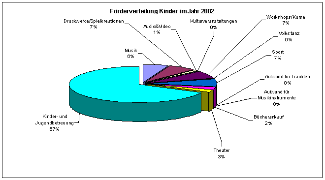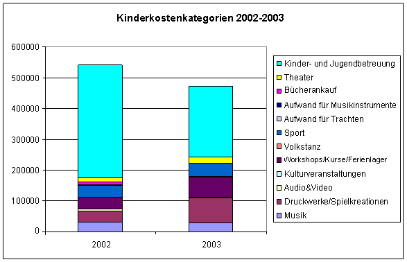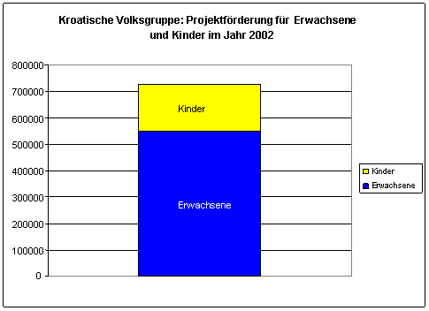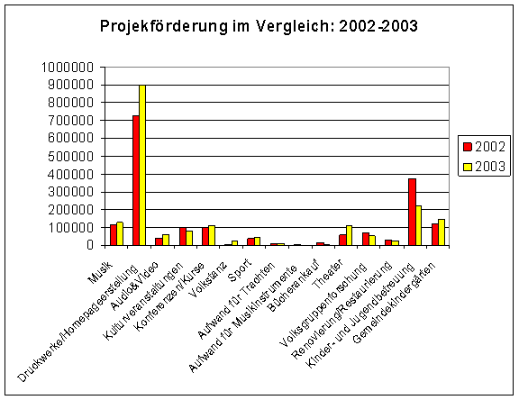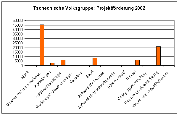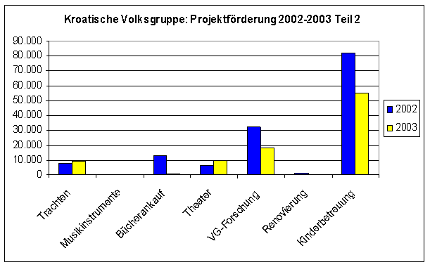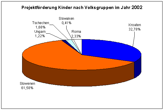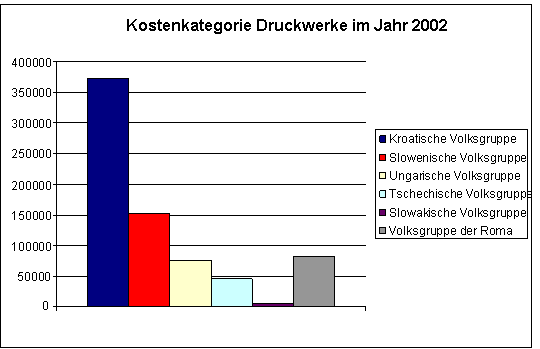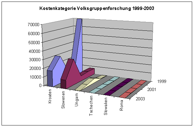 Das Bundeskanzleramt hatte daher im Bericht über die Jahre 1997-2001 die Förderungsmaßnahmen gemäß § 9 Abs. 7 des Volksgruppengesetzes anhand der tatsächlich verwirklichten Förderungszwecke, das heißt anhand der tatsächlichen Abrechnungen aufgearbeitet. Dieses System wurde auch im Bericht über die Jahre 2002 und 2003 beibehalten. Die verwendeten Förderungsmittel wurden nach Ausgabenkategorien geordnet, zahlenmäßig und graphisch dargestellt und kommentiert. Diese Art der Darstellung ermöglicht volksgruppenpolitische Rückschlüsse auf die Tätigkeiten der Volksgruppenorganisationen im Sinne der Zielsetzungen des Volksgruppengesetzes und auf die ihnen zur Verfügung stehende technische Infrastruktur.