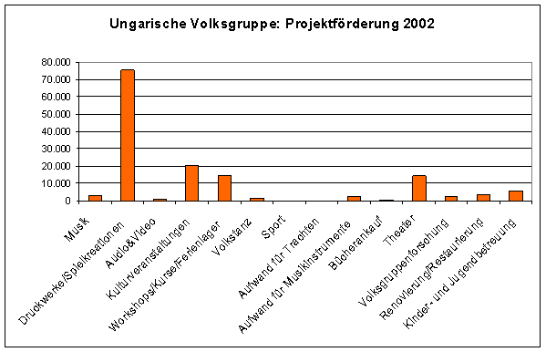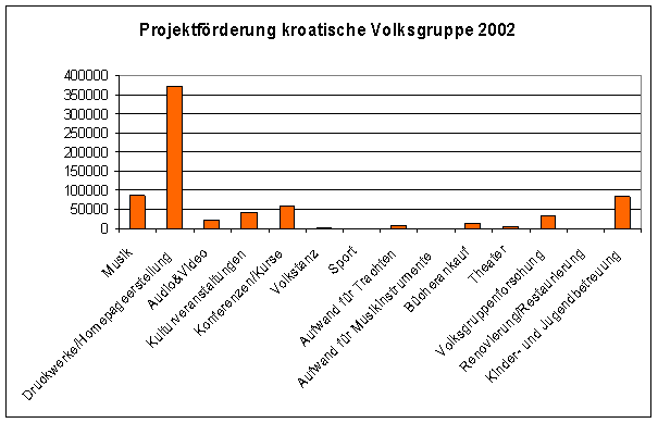 6.1. Reihung der Ausgabenkategorien nach der Höhe ihres Anteils an der Gesamtförderung für alle Volksgruppen einschließlich der „Sonstigen Zuschüsse“ (Präferenzjahr 2002) ................................................................................................................................. 17