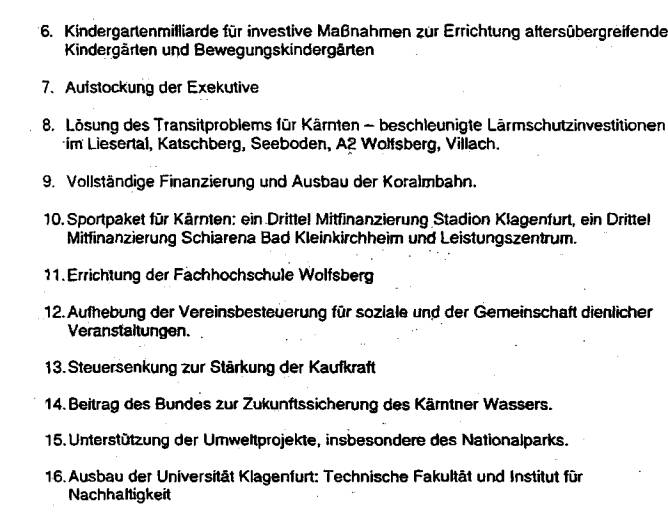 "Forderungskatalog des Landes Kärnten an die Österreichische