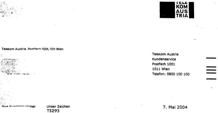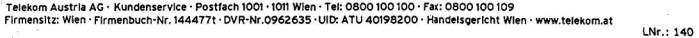 Telekom Austria AG, Postfach 1001, 1011 Wien, zu senden. Die Telekom