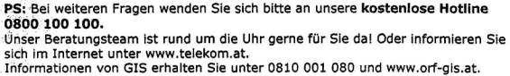 Schreiben mit folgendem Inhalt: Telekom Austria wird Ihnen den