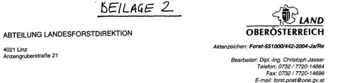 forstrechtlichen Vorschreibungen gemacht werden können."(siehe Beilage 2)