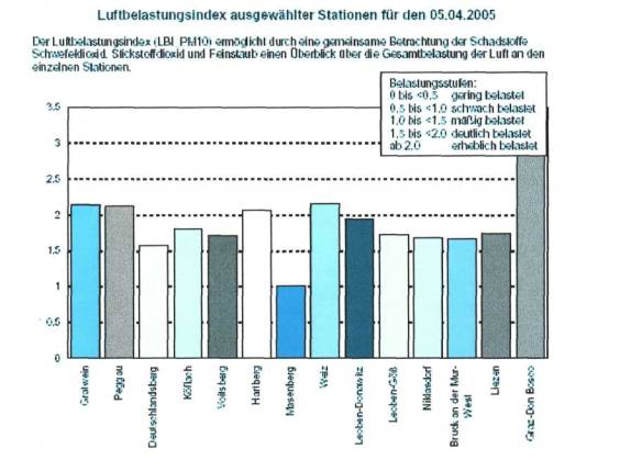 Über den Server der Landes-Umwelt-Informationssystem (LUIS) der Steiermark können die täglichen Messwerte abgerufen werden. Dabei wird deutlich, dass Graz eine be- sondere Belastungssituation zu verzeichnen hat.