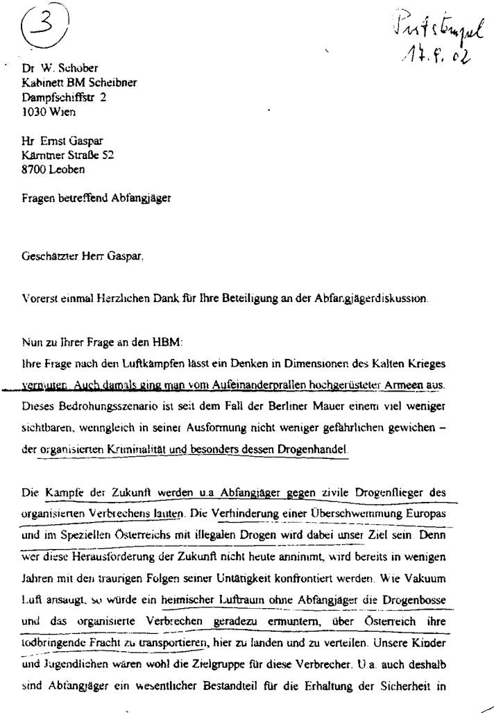 öffentliche Diskussion in der Causa Abfangjäger nahm ein obersteirischer Bürger