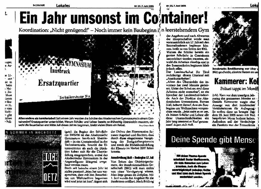 betreffend Raumnot an Innsbrucker Gymnasien 2006
