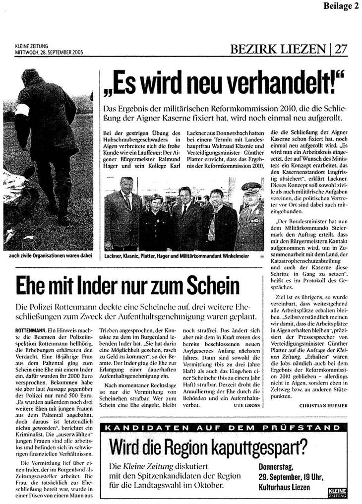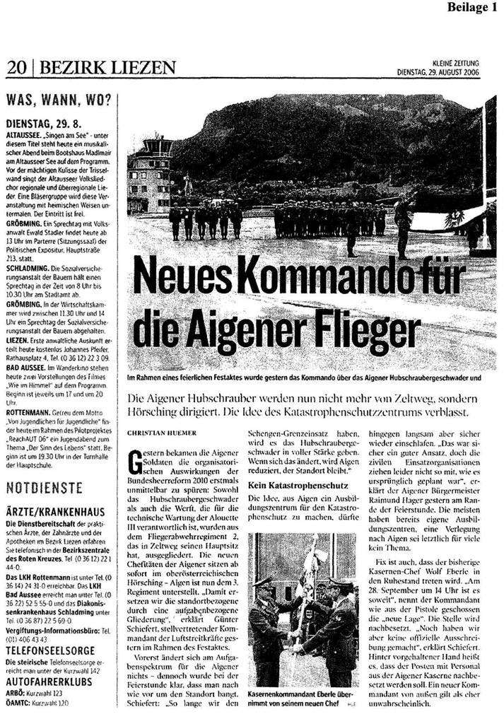 „Kleinen Zeitung" vom 29. August 2006 (siehe Beilage 1)