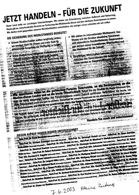 In den Tageszeitungen am 7. Juni 2003 wurde ein Aufruf von
