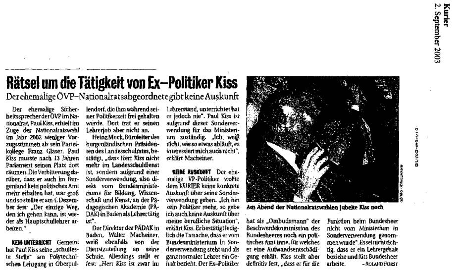 nachzulesenden Artikels im Kurier vom 2. September 2003 mit