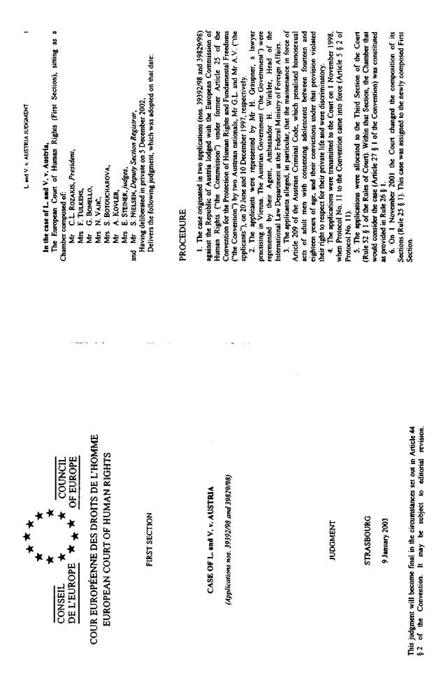 • L. & V. vs. Austria, Judg. 09.01.2003, Appl. 39392/98, 39829/98