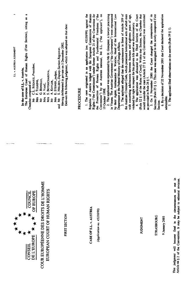 • S.L. vs. Austria, Judg. 09.01.2003, Appl. 45330/99