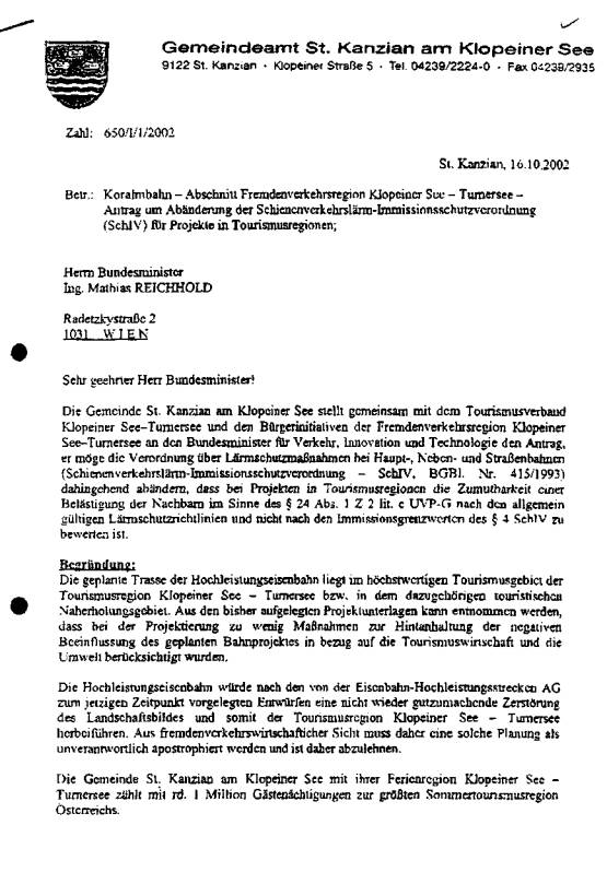 Beschluß des Gemeinderats von St. Kanzian vom 16. Oktober 2002