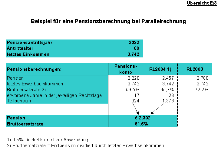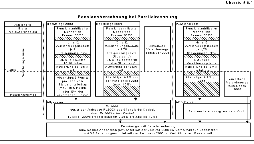 Einführung des Pensionskontos und der Parallelrechnung: Da, wie in der