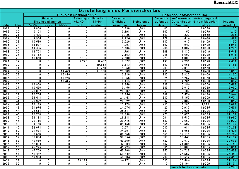 Pensionsversicherung ergibt sich schlichtweg aus dem schon derzeit