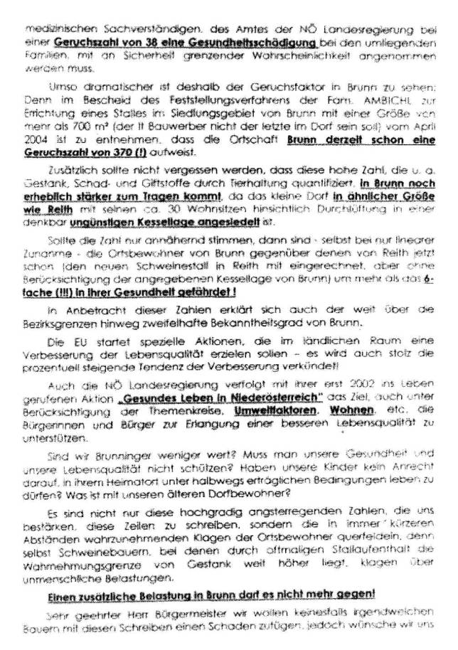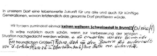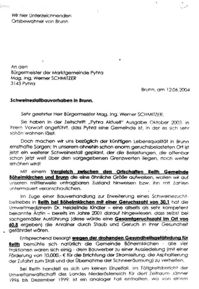 beiliegende Unterschriftenaktion in Brunn (Gemeinde Pyhra, NÖ) belegt.