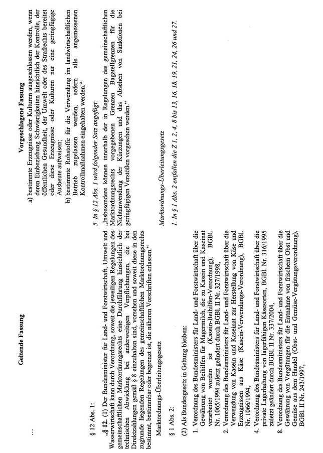 betreffend ein Bundesgesetz, mit dem das Marktordnungsgesetz 2007 - MOG 2007 und das Marktordnungs-Überleitungsgesetz geändert werden
