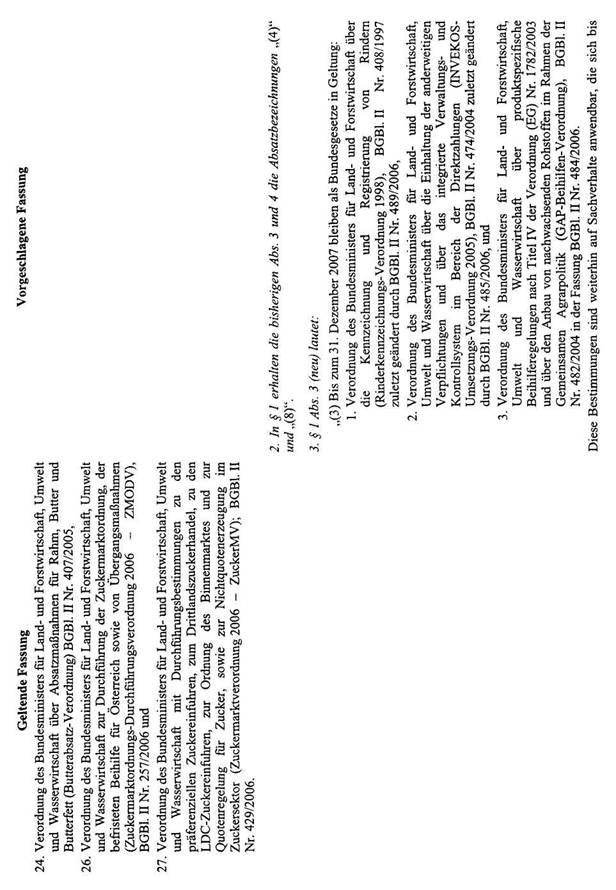 Infolge Einfügung der neuen Abs. 3 (Aufhebung bestimmter Verordnungen zum 31. Dezember 2007), Abs. 5 (Aufhebung bestimmter Verordnungen zum 31. März 2008), Abs. 6 (Aufhebung bestimmter Verordnungen zum 30. April 2008) und Abs. 7 (Aufhebung bestimmter Verordnungen zum 31. August 2008) erhalten die Abs. 3 und 4 neue Absatzbezeichnungen.
