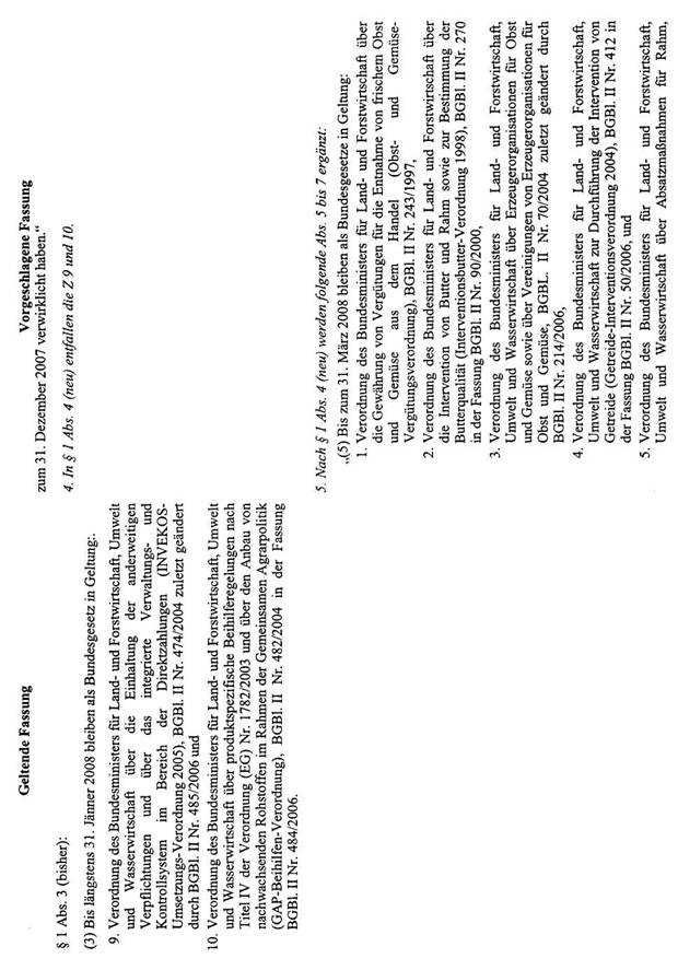 Die INVEKOS-Umsetzungs-Verordnung 2005 und die GAP-Beihilfen-Verordnung sind bis 31. Jänner 2008 auf Gesetzesrang gehoben. Da die vorgesehenen Neuerungen auf Basis des MOG 2007 bereits mit 1. Jänner 2008 wirksam werden sollen, hat die Aufhebung der alten Verordnungen zum 31. Dezember 2007 zu erfolgen. Die neuen Verordnungen sind aufgrund der Durchführungsbestimmungen des MOG 2007 zu erlassen (siehe dazu auch die Änderungen des § 8 Abs. 3 und § 12 Abs. 1 MOG 2007 durch Artikel 1 dieser Novelle).