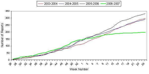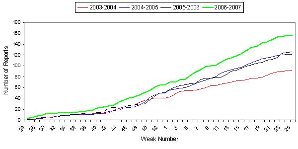 Verlauf der durch im Impfstoff enthaltenen Subtypen verursachten Infektionen in England