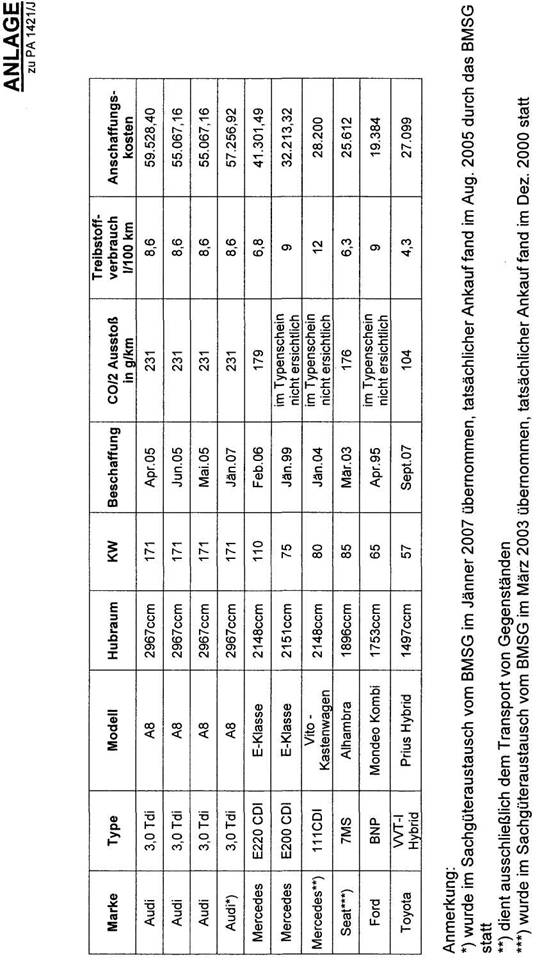 Ø Wie hoch waren die Anschaffungskosten dieser Fahrzeuge. Bitte um genaue Auf-listung pro Fahrzeug.