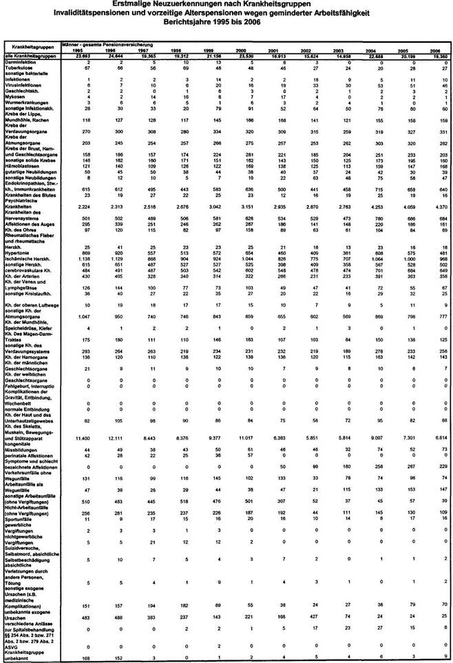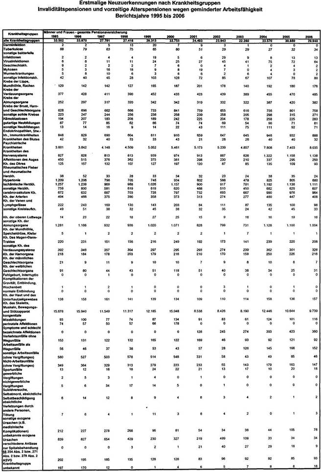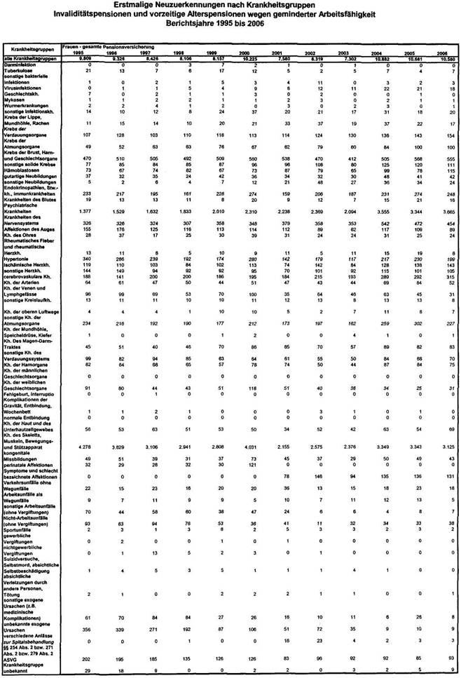 Die Anzahl der in den Jahren 2005, 2006 und 2007 (bis Ende August) gestellten Anträge auf Invaliditäts-, Berufsunfähigkeits- bzw. Erwerbsunfähigkeitspensionen kann der folgenden Tabelle entnommen werden:
