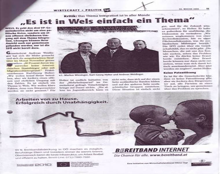Am Mittwoch, den 13. Dezember 2006, wurden in der Ausgabe (50. Woche) der TIPS auf Seite 15 und in der Welser Rundschau in der Ausgabe Nr. 50 auf den Seiten 6/7 die in der Anlage angefügten Artikel veröffentlicht.
