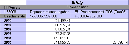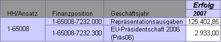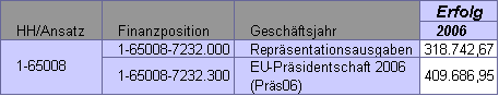 Auch hier wurden die unter 1-65008-7232.300 angefallenen Repräsentationsausgaben für die EU-Präsidentschaft 2006 gesondert ausgewiesen.