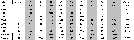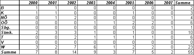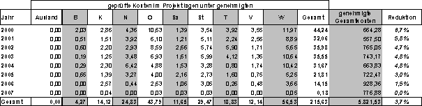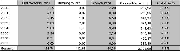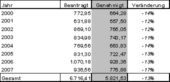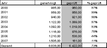 Anmerkung: Als Zuordnungskriterium wurde das Jahr der Projektgenehmigung herangezogen. Da Projekte aus den Jahren 2004 bis 2007 noch laufen (punktuell auch davor) wird es für diese Jahre noch Veränderungen im Sinne von steigenden Ausfällen geben.