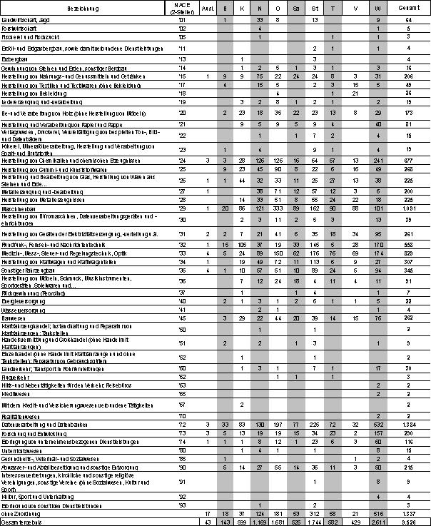 FFG-Tabelle 6: Darstellung der Projekte nach Bundesland und NACE-Code