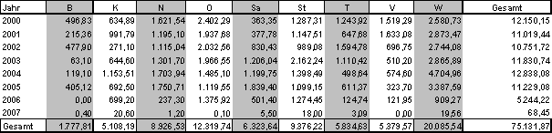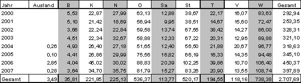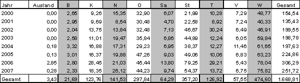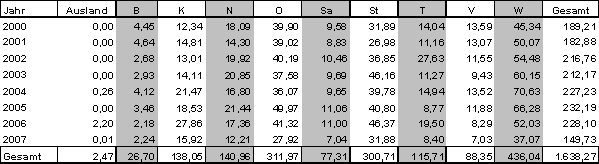 · Projekte die in den Jahren 2000 bis 2007 genehmigt wurden produzierten